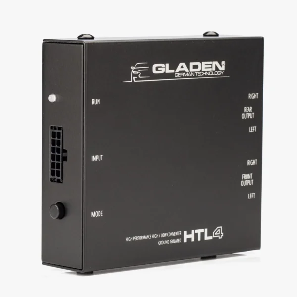 GLADEN HTL4 är en högkvalitativ fyrkanalig Hög-Låg adapter utformad för smidig integration av eftermonterade förstärkare i moderna fordons ljudsystem.